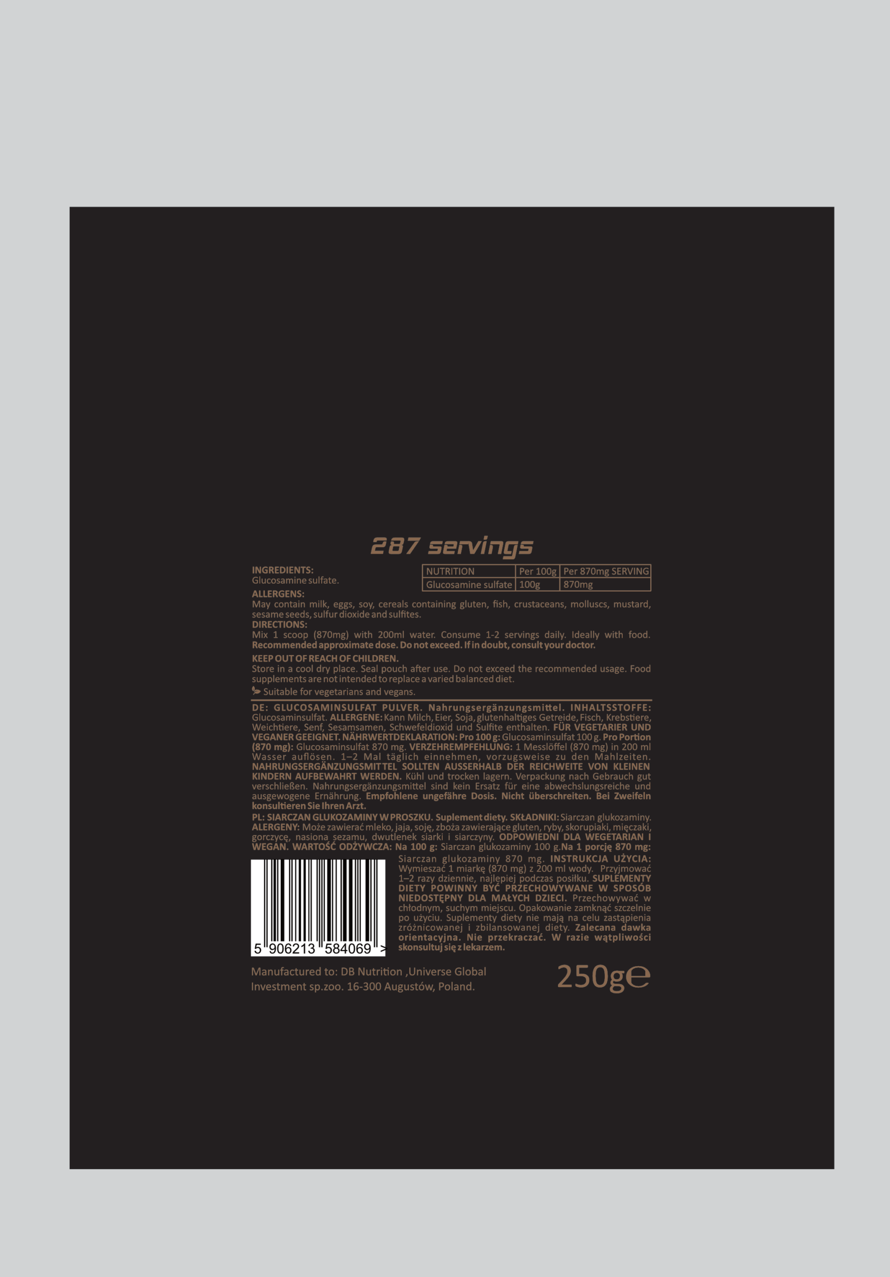 • 870 mg siarczanu glukozaminy w jednej porcji